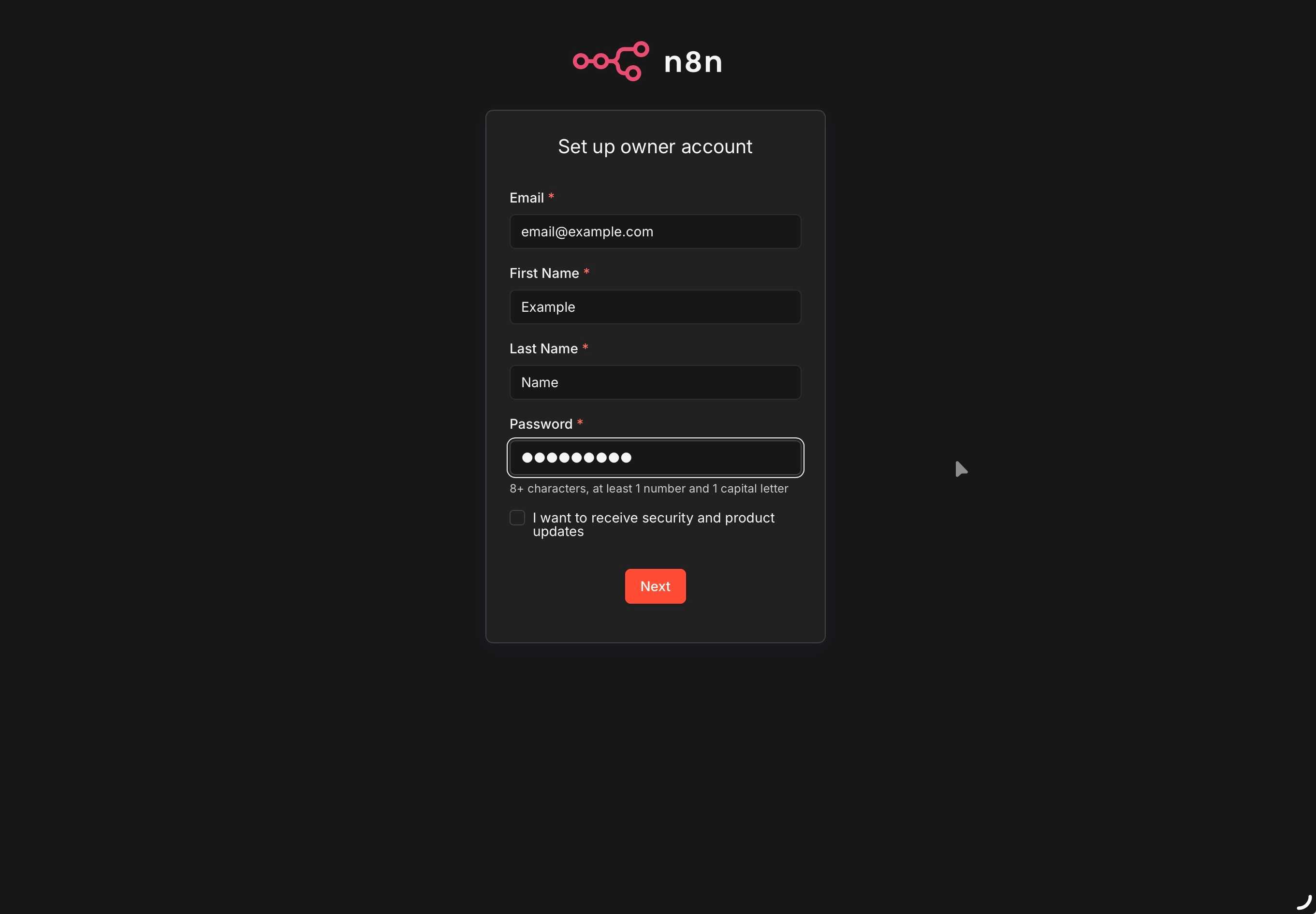 The information here is necessary for you to remember, but does not get sent to n8n. The email can be email@example.com as I have done here, and it will work fine.